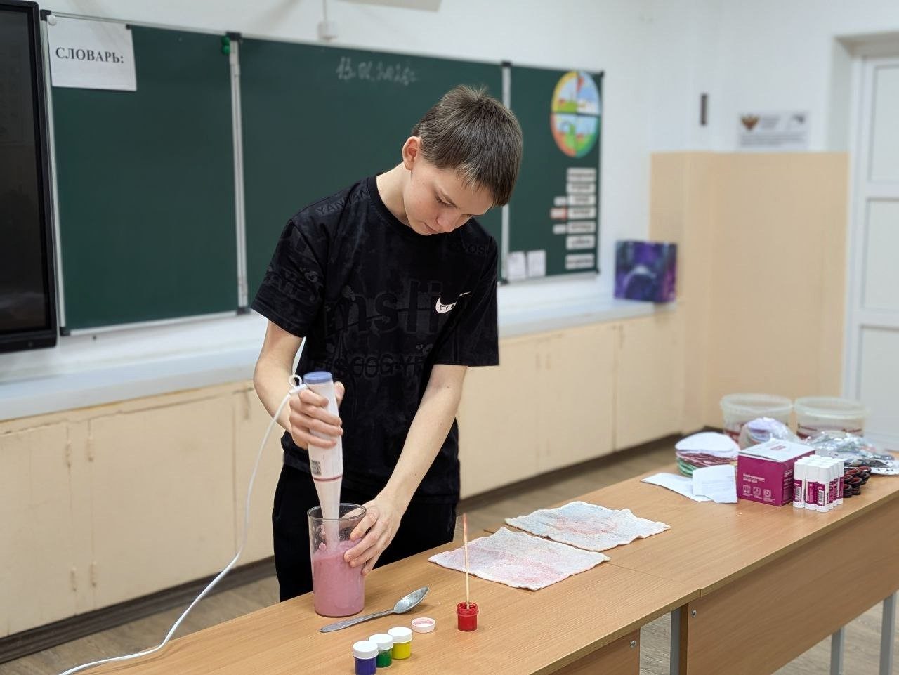 Далее обучающиеся приняли участие в практической части занятия, где каждый смог самостоятельно освоить простой способ переработки бумаги дома. Из старых ненужных листов школьники получили новую оригинальную бумагу ярких цветов, пригодную для изготовления поздравительных открыток и творческих работ.
