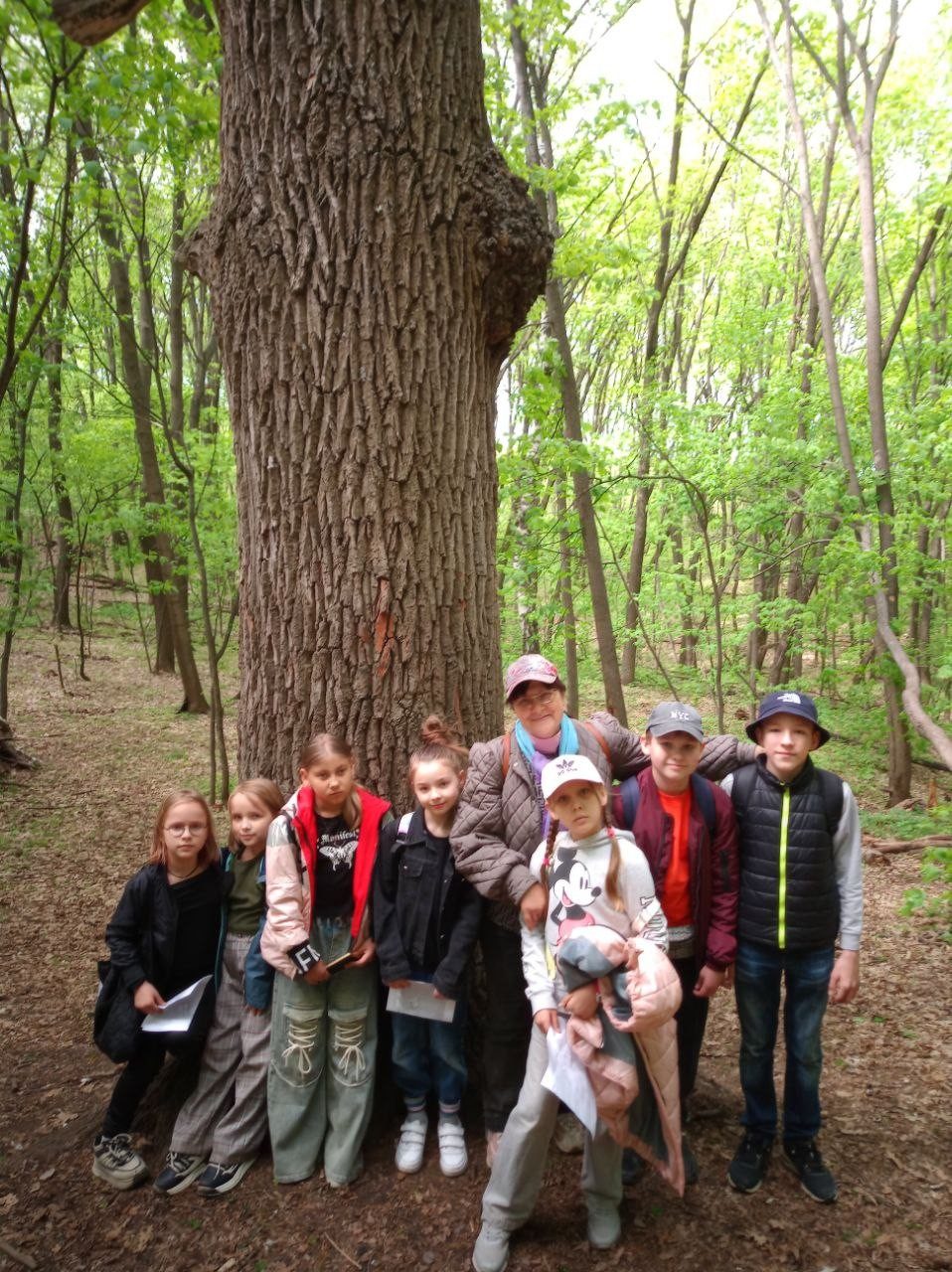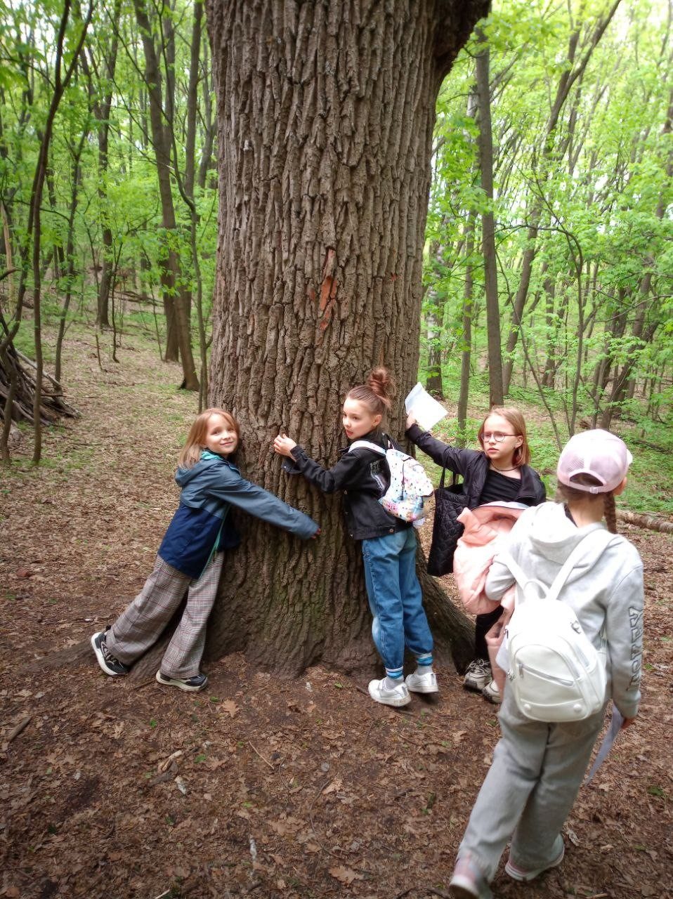 Затем ребята посетили легендарный Дуб-великан - впечатляющий своими размерами и историей, ему более 200 лет! Посажен он еще в царские времена. Сколько он видел, сколько он помнит! А относится он к одному из наиболее распространенных видов – дубу черешчатому. Именно дуб черешчатый воспет в строках русских народных песен и сказаниях.