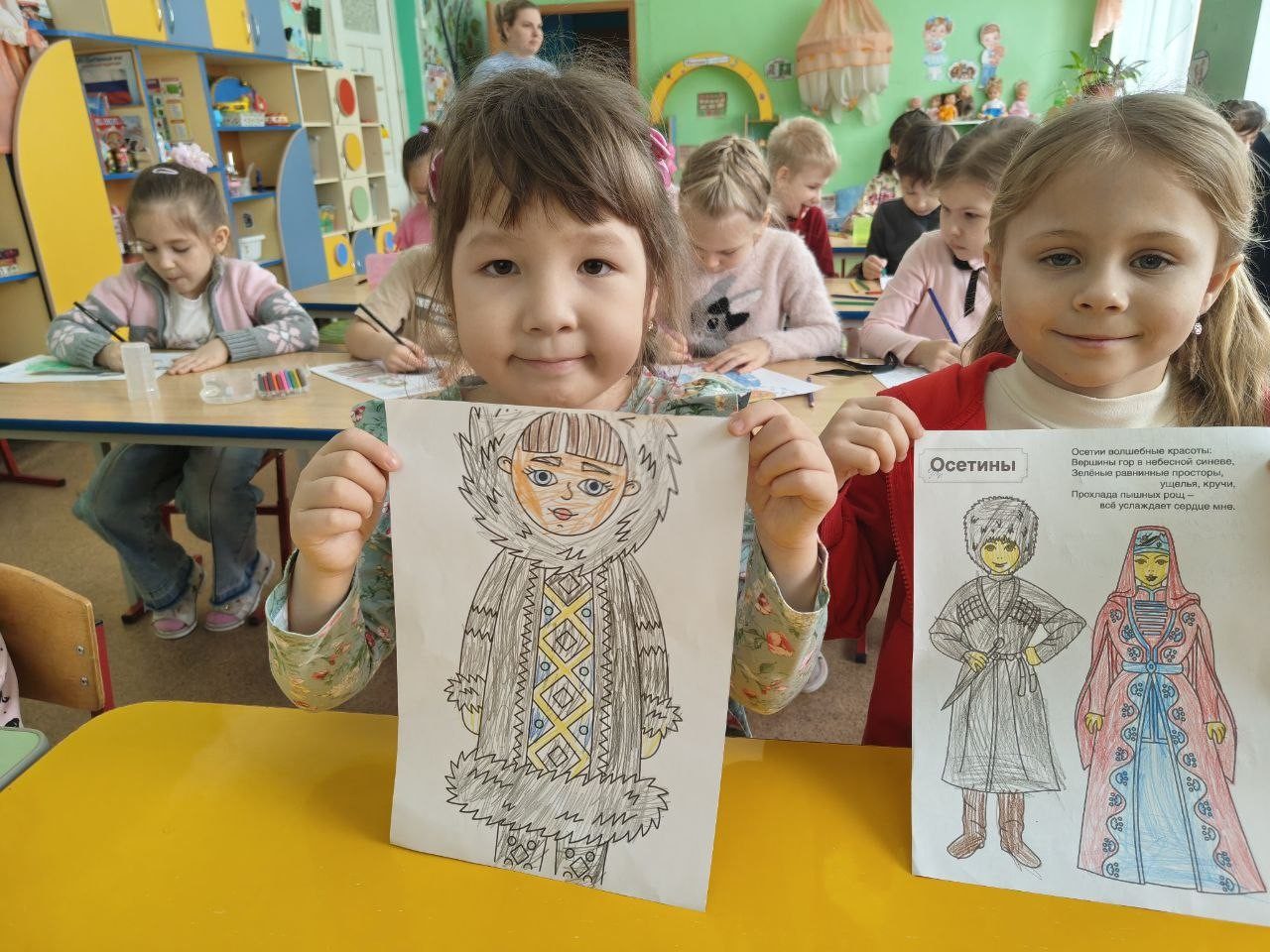 Ребятам предложили самостоятельно создать яркие рисунки, иллюстрирующие традиционные народные костюмы различных регионов России.